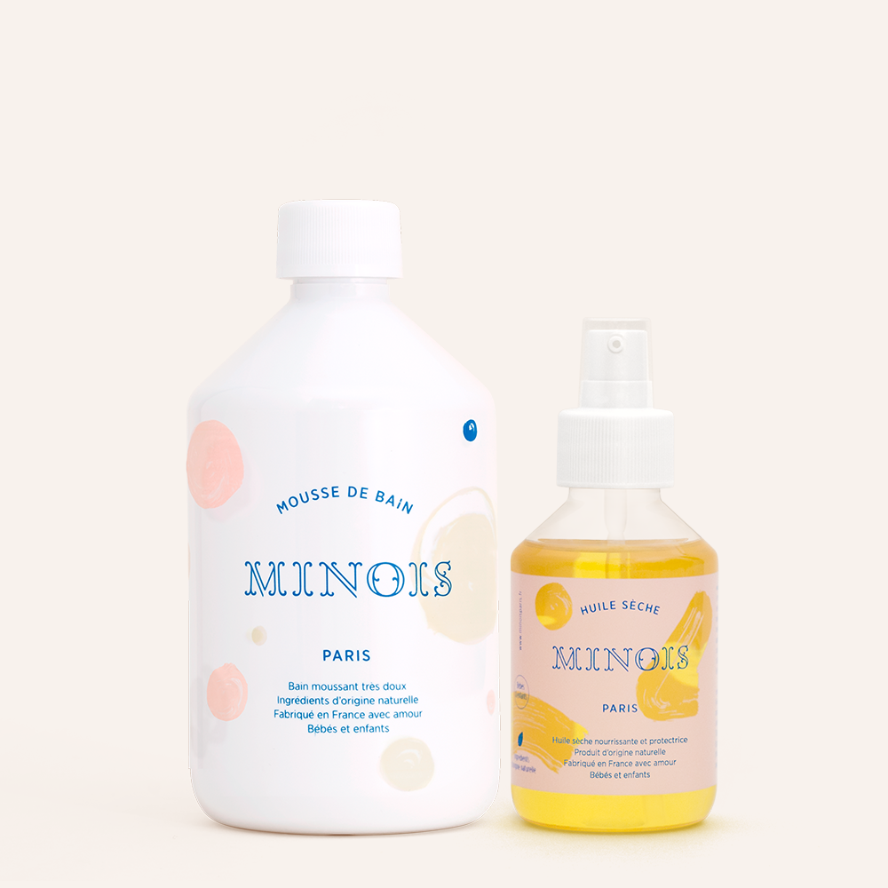 La Mousse de Bain, pour profiter d'un agréable moment de détente le temps d'un bain moussant, associée à l'Huile Sèche, un soin nourrissant multi-usage qui prend soin de la peau et des cheveux. Idéale aussi en huile de massage pour apaiser le corps.
